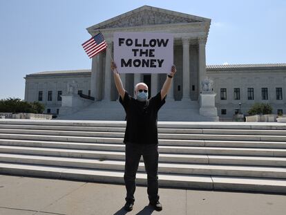 Donald Trump parece dispuesto a pelear hasta el final —y más allá— para evitar que su historial financiero y fiscal de los últimos años acabe en manos de la fiscalía de Nueva York. El Tribunal Supremo decidió la semana pasada con siete votos a favor y dos en contra que el presidente de Estados Unidos no puede bloquear la entrega de esos datos, reclamados por un gran jurado que le investiga. La sentencia, de gran calado político, delimitó el poder presidencial como décadas atrás lo hizo en el caso Watergate o el caso Lewinsky. Ahora, la defensa del republicano planea presentar una queja contra la citación judicial.