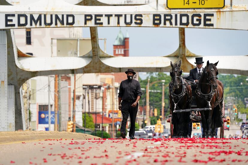 Esta vez, el puente fue cubierto con pétalos de rosas rojas y el ataúd, envuelto en una bandera de Estados Unidos, cruzó lentamente en una carroza llevada por caballos. Tras la muerte del congresista Lewis diversos grupos han pedido que, a partir de ahora, el puente lleve el nombre del legislador que luchó por los derechos civiles. La petición ocurre en medio del auge de las protestas contra el racismo en todo el país y también considerando que su nombre actual pertenece al del oficial Edmund Pettus del Ejército confederado cuya visión, durante la guerra civil, fue a favor del esclavismo de los afroamericanos.
