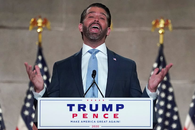 El presidente insistió en hablar del “virus de China”. Pero su hijo Donald Trump Jr., en uno de los discursos estrella de la noche, que compitió en efusividad con el pronunciado por su pareja, la expresentadora de Fox News Kimberly Guilfoyle, fue incluso más allá. Tras atribuir a su padre unos superlativos logros económicos, soltó: “Entonces, cortesía del Partido Comunista Chino, el virus golpeó”. El patógeno que ha sumido a Estados Unidos en la mayor crisis económica desde la Gran Depresión parecía solo una piedra en el camino hacia la gloria que el presidente Trump necesita cuatro años más para consumar.