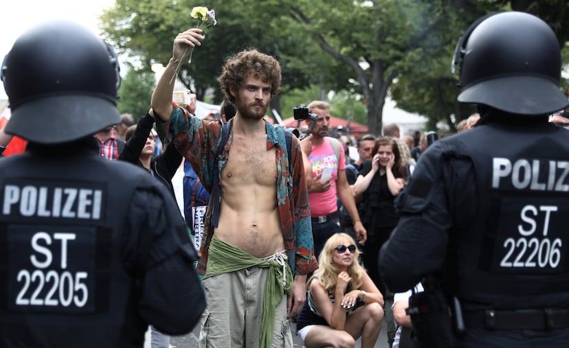 El tribunal administrativo de Berlín acabó por dar la razón a los organizadores al dictaminar que “la existencia de un peligro inmediato para la seguridad pública” no era un motivo válido, pero puso como condición el respeto a las medidas vigentes. Este sábado, la policía, tras observar cómo los manifestantes marchaban sin respetar las medidas y constatar un ambiente que podía culminar con actos de violencia, anunció que las marchas y el acto central que debía tener lugar en la avenida 17 de junio debían disolverse, como también ocurrió el 1 de agosto pasado. ¿La razón?: la violación de las normas sobre la distancia y las máscaras. “Todas las medidas tomadas hasta ahora no han conducido al cumplimiento de las condiciones”, señaló la policía a través de altavoces y también vía Twitter.
