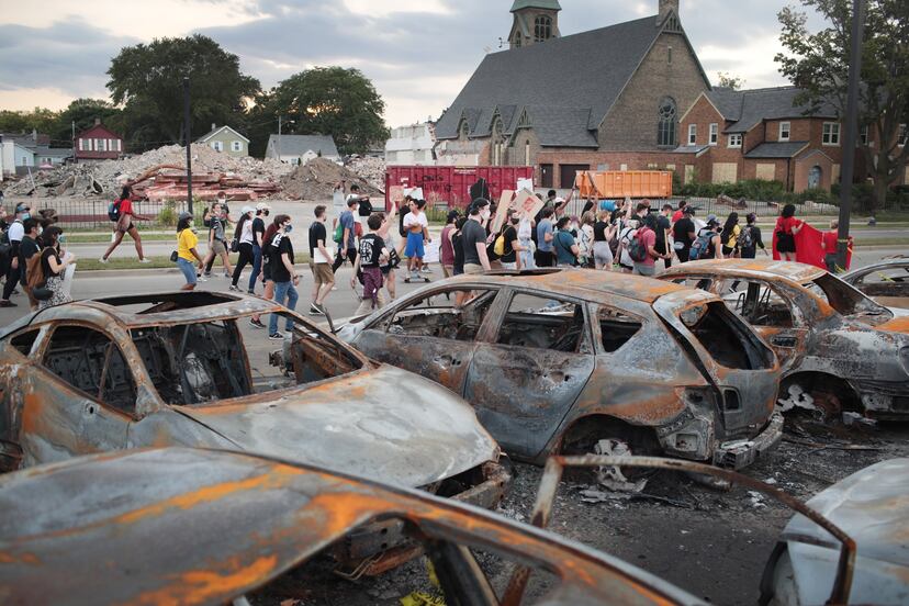 El suceso reavivó la llama de las protestas por la justicia racial que han recorrido el país desde que, el pasado 25 de mayo en Minneapolis, a 600 kilómetros de Kenosha, otro policía blanco matara a otro afroamericano, George Floyd, ahogándolo con la rodilla en su cuello mientras la víctima le decía que no podía respirar. El patrón se repite. La gente, furiosa, sale a protestar pacíficamente. Por la noche, una minoría de violentos siembra el caos en la ciudad. Pintadas, coches incendiados, saqueos y, a la mañana siguiente, tablones.