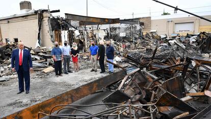 “Voy allí por la policía y por la Guardia Nacional porque hicieron un gran trabajo en Kenosha. Apagaron la llama inmediatamente”, ha dicho Trump antes de subir al Air Force One y poner rumbo a Wisconsin. Al llegar a la ciudad de 100.000 habitantes, al borde del lago Michigan, ha visitado las ruinas de un edificio quemado durante los disturbios y se ha reunido con los propietarios de una tienda de muebles vandalizada. También ha mantenido un encuentro con sheriffs locales y políticos republicanos, ante quienes ha insistido en las críticas a sus rivales demócratas. “Los temerarios políticos de extrema izquierda siguen apoyando el mensaje destructivo de que nuestra nación y nuestra policía son opresoras y racistas”, ha dicho.