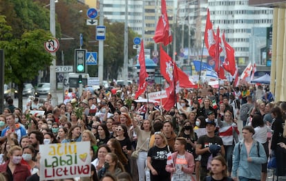 Las mujeres están en primera línea de las protestas en Bielorrusia. Miles de ellas han vuelto a marchar por las calles en Minsk y otras ciudades este sábado para exigir el fin de la represión y la salida de Aleksandr Lukashenko. En un país profundamente patriarcal, donde su líder autoritario no escatima en comentarios sexistas y no hay leyes específicas contra la violencia machista, muchas mujeres se descubren ahora como sujetos políticos y de derechos. Y aunque la igualdad de género no ocupa aún un lugar sustancial en la agenda, sus movilizaciones constantes por la democracia plantan los cimientos de una incipiente ola feminista.