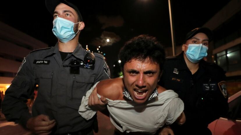 Cuando la policía comenzó a identificar a los manifestantes para verificar si habían violado los límites del confinamiento estallaron los enfrentamientos, que se tornaron violentos al final de la noche. Los agentes –que emplearon cañones de agua y desplegaron unidades montadas a caballo contra la multitud– practicaron 38 detenciones y dejaron algunos contusionados, entre ellos, el veterano alcalde de Tel Aviv, el laborista Ron Hudai, quien resultó levemente herido en un brazo durante una de las cargas.