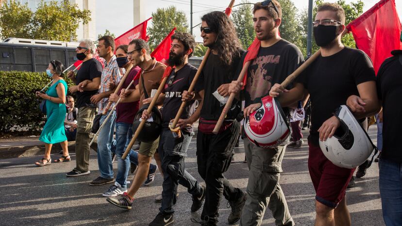 La policía lanza gases lacrimógenos contra la multitud que protestaba en Atenas contra el movimiento radical, que llegó a ser tercera fuerza del país