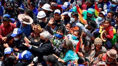 El expresidente Evo Morales volvió este lunes a Bolivia después de 11 meses de exilio en Argentina. Cruzó a pie el puente que une la ciudad de La Quiaca con la población de Villazón, donde lo esperaban miles de simpatizantes. Lo acompañó el presidente argentino Alberto Fernández, quien había llegado a frontera tras participar el domingo en la toma de posesión del nuevo presidente boliviano, Luis Arce. La victoria del candidato del MAS, el partido fundado por Morales, permitió que el expresidente pudiera retornar. Poco después de las elecciones de octubre, que Arce ganó con el 55% de los votos, un juez suspendió la orden de detención que el Gobierno interino de Jeanine Áñez había solicitado en contra del expresidente.