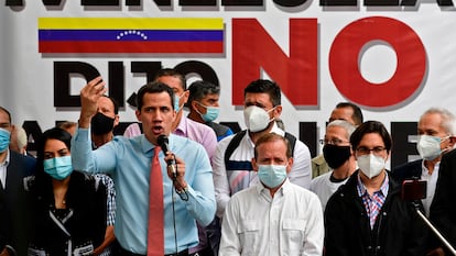 “El llamamiento a todos es vencer el esquema de censura de la dictadura, que no nos permite elegir. Esta fue la respuesta de una sociedad que está hastiada”, ha dicho Guaidó. El líder de la oposición ha puesto en marcha una consulta popular digital este lunes con la que pretende medir su fuerza y que está previsto que termine con una protesta en las calles el sábado, a la que ha llamado masivamente a participar. La consulta de tres preguntas busca rechazar el fraude que anticipadamente señaló un sector de la oposición, exigir la realización de elecciones presidenciales y parlamentarias libres y respaldar sus gestiones ante la comunidad internacional para atender la crisis humanitaria. En las calles de Venezuela, sin embargo, el hastío social que él mismo ha señalado también se traslada a la iniciativa del opositor que cumplirá dos años intentando sin éxito forzar una transición política.