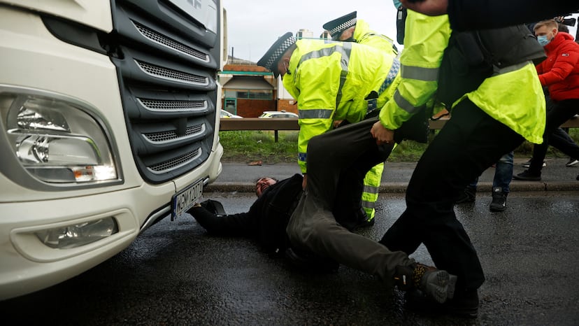 Camiones y vehículos profesionales comenzaron a atravesar el canal de La Mancha en las primeras horas de este miércoles, después de 48 horas de bloqueo en el puerto inglés de Dover, con la reapertura la pasada medianoche de las fronteras entre el Reino Unido y Francia. La tensión de muchos conductores atrapados en la isla desde hace ya casi tres días ha provocado los primeros enfrentamientos con la policía en las instalaciones portuarias, mientras crece la irritación entre los miles de transportistas que permanecen retenidos en el aeropuerto de Manston. París había bloqueado el paso el domingo para detener la propagación de la nueva cepa de coronavirus detectada en territorio británico. Será un desenlace lento de una situación que en las últimas horas del martes ya se había vuelto caótica. El cierre de la frontera dejó interrumpidas las rutas de carga entre el país y la UE, así como a miles de conductores varados en el sureste del Reino Unido, a tan solo unos días de la Navidad.