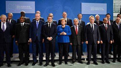 Frenar la injerencia militar y política de potencias extranjeras en el polvorín libio. Ese es el compromiso que el domingo alcanzaron los líderes de Rusia, Turquía, Alemania, Italia y Francia entre otros países implicados en el conflicto libio y reunidos en Berlín este domingo en una cumbre de extraordinaria relevancia. Los asistentes aspiran a haber puesto la primera piedra de un proceso pacificador, que pasa en primer lugar por un alto el fuego permanente y un embargo de armas verificable. Pero el objetivo en Berlín ha sido, sobre todo, forzar a que los bandos enfrentados por el control del país y la industria petrolera dejen de recibir ayuda militar del extranjero en un conflicto con cada vez más actores secundarios que nutren de armas y efectivos. Es decir, se trata de evitar a toda costa la internacionalización de un conflicto que amenaza con convertirse en una nueva Siria.