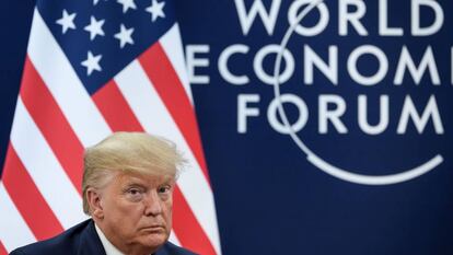 Su América primero se ha convertido ahora en los trabajadores primero, sin más destinatarios que quienes deben depositar su voto el próximo mes de noviembre. Poco antes de subir al Air Force One con destino a Suiza, Trump ya había publicado un vídeo, de marcado tono electoral, donde repasaba todos sus logros al frente de la Casa Blanca. Más o menos como el largo desglose, de unos 20 minutos, que hizo este martes en el Foro Económico Mundial (WEF, por sus siglas en inglés). “Esperaban que crearamos dos millones de empleos y hemos creado siete”; “en la primera mitad de 2019 atrajimos un 25% de toda la Inversión Extranjera Directa del mundo"; “en la misma semana hemos firmado dos acuerdos comerciales, con China y Canadá y México, que marcarán la senda del siglo XXI”. Por resumir, “la nueva prosperidad estadounidense es innegable, sin precedentes y sin comparación en el mundo”.