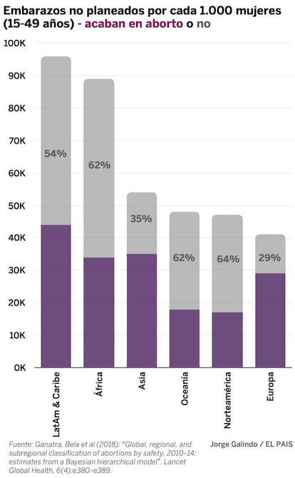 Una barrera que, por cierto, no es suficiente para evitar la enorme incidencia de los procedimientos menos seguros entre las mujeres del continente. En Latinoamérica y Caribe, menos de un cuarto de los abortos pueden considerarse garantizados para la salud de la mujer.