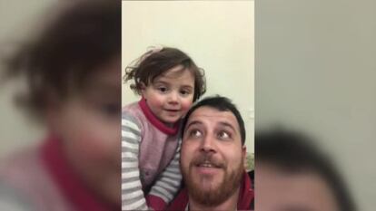 Mehmet Algan y Abdalla Mohamed se conocieron hace siete años en Estambul (Turquía). Un amigo en común les presentó. Mehmet, de 34 años, sigue trabajando en la ciudad turca, pero Abdalla, de 32 años y sirio de nacimiento, se encuentra refugiado de la guerra en la ciudad de Sarmada, cerca de la frontera sirio-turca, en la castigada provincia de Idlib. Junto a él están su esposa y su hija de tres años. El pasado sábado, 15 de febrero, Mehmet, como en otras ocasiones, llamó a Abdalla para preguntarle cómo iba la cosa. Este le contó lo que hacía muchos días con su hija, Salwa, para que el estruendo diario de las bombas no golpeara su pequeño corazón de tres años. Jugaba un poco al engaño para proteger a su niña. Jugaba a que lo que sonaba no era la guerra, sino otra cosa mucho más divertida. Y mandó un vídeo mostrándoselo a su amigo Mehmet. Era otra cara del cruento conflicto sirio.