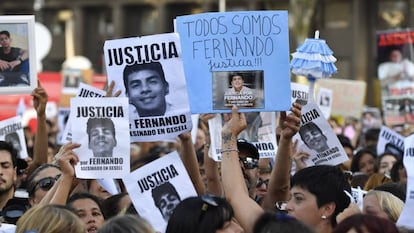 "Perpetua, perpetua, perpetua" y "¡Asesinos, asesinos, asesinos!", gritaban los manifestantes reunidos en Buenos Aires para acompañar a los padres del adolescente asesinado. "Justicia por Fernando", se leía en las hojas tamaño A4 que levantaban y también en la imagen proyectada detrás del escenario donde subieron los padres de Fernando, la joven que era su novia y sus compañeros de escuela. Una fotografía recordaba al joven entre una bandera de Paraguay, el país de sus padres, y una de Argentina, donde nació y creció.