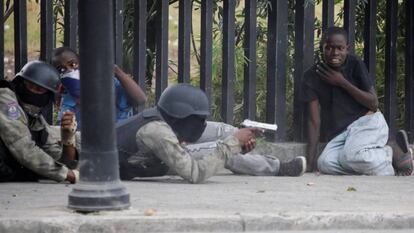 La tensión vuelve a reinar en Haití tras un enfrentamiento el domingo entre policías y militares después de que un grupo de oficiales de la policía local intentara asaltar un cuartel del Ejército en el centro de Puerto Príncipe, cerca del Palacio de la Presidencia, en demanda de mejoras laborales. El tiroteo entre las dos fuerzas de seguridad ha dejado al menos dos muertos y una docena de heridos. La tensión se mantiene el lunes en la capital, con barricadas levantadas en las principales arterias y la actividad comercial paralizada, por lo que el Gobierno calificó los hechos como “una situación de guerra” y decidió suspender el carnaval local, cuyo inicio estaba previsto para el martes, “para evitar un baño de sangre”. El Ejecutivo que encabeza el polémico presidente Jovenel Moïse acusó a los oficiales rebeldes de rechazar el diálogo para encontrar una solución a la crisis.
