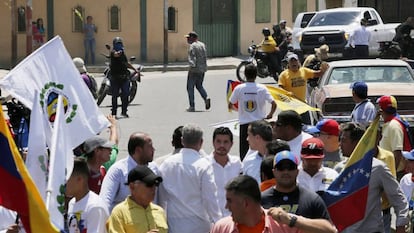 El líder de la oposición a Nicolás Maduro, Juan Guaidó, visitó este sábado el Estado Lara, en la región centrooccidental de Venezuela, para invitar a sus seguidores a movilizarse el 10 de marzo en un nuevo intento de reactivar la protesta y exigir una salida a la crisis política y social a través de elecciones presidenciales. La concentración, a la que acudieron unas 2.000 personas, fue atacada por grupos armados que dejaron al menos cinco heridos. Uno de ellos es el joven Yorbis Lucena, de 16 años, que recibió un impacto una bala en una pierna. Una de las imágenes que dejó la jornada es la de un hombre armado, a menos de 50 metros de Guaidó, que lo apunta con una pistola.
