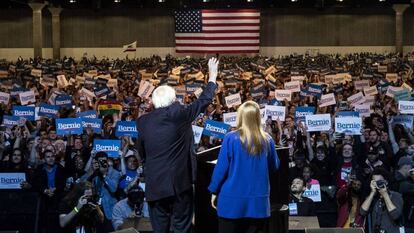 Sanders ni los mencionó este domingo en Los Ángeles. Habló de su plan de sanidad universal, de revertir todas las políticas de inmigración de Trump, de prohibir el sistema de fianzas penales y las prisiones privadas, de legalizar la marihuana en todo el país y expurgar los antecedentes penales relacionados con esta droga. Ante el entusiasmo de sus miles de seguidores, proclamó: “Estáis poniendo muy nervioso al establishment”.