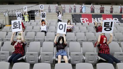La pandemia de coronavirus ha obligado a la liga de fútbol de Corea del Sur, al igual que en otros muchos países, a que sus partidos se jueguen a puerta cerrada. Las gradas vacías resultan desoladoras, y por eso algún club ha recurrido a colocar hinchas de cartón para llenar los estadios. Pero otros han llevado la idea demasiado lejos. El FC Seoul, de la capital de Corea del Sur, se ha excusado ante sus seguidores por haber colocado en los asientos de su estadio muñecas sexuales.