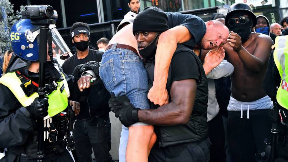 Un participante en las protestas antirracistas de Londres cogió en brazos a un hombre blanco que estaba siendo agredido