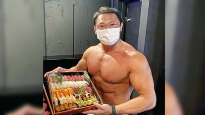 "En Japón, los hombres que practicamos el culturismo seguimos siendo una rareza y la palabra 'macho' tiene, sobre todo, una connotación de espectáculo", explica por teléfono Sugiura desde Anjo, en la provincia de Aichi, en la región central de Japón. Dice que entre sus clientes abundan las mujeres jóvenes, pero también pacientes en hospitales y familias con niños que celebran fiestas de sushi, reuniones para las cuales se suele pedir a domicilio una enorme bandeja con decenas de piezas del típico preparado en sus múltiples variedades.