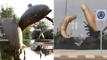 Y algunos internautas, al ver la foto, se inspiraron en dos penes enhiestos. Las risas fueron aumentando y el pasado jueves 17 de septiembre las autoridades de Mehda mandaron destruir los dos peces. Primero se adelantó un operario a base de martillazos, pero así no había manera de echarlos abajo. Fue necesaria la intervención de una excavadora.