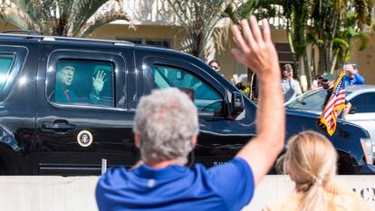 El último vuelo del Airforce one con Trump a bordo aterrizó a las 11:00 en el aeropuerto internacional de Palm Beach. Le quedaba solo una hora como presidente y la aprovechó regalándose un baño de multitudes. Más de un centenar de seguidores le esperaban en la calle antes de cruzar el puente que conecta la península con la isla, cerrado al público horas antes. La caravana con el séquito familiar avanzaba despacio por el asfalto. Desde el asiento trasero y con la ventanilla subida del imponente cadillac blindado que mandó fabricar durante su mandato, Trump saluda a sus simpatizantes: “os quiero”. “Dios os bendiga”. Hubo gritos de éxtasis y rabia, lágrimas y desconsuelo durante los últimos minutos de presidencia del magnate republicano.