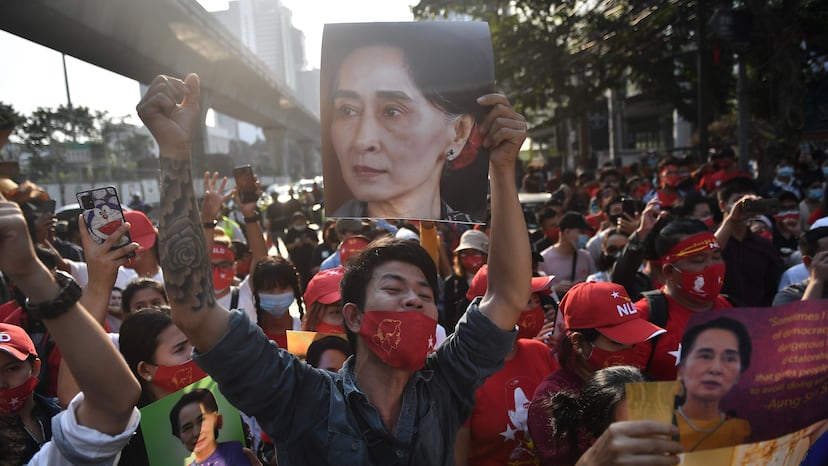 Los militares detienen a Aung San Suu Kyi, premio Nobel de la Paz, junto a otros dirigentes civiles. Los militares justifican su acción como “respuesta a las denuncias de fraude” en los últimos comicios