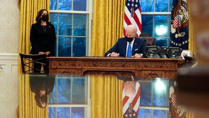 El presidente Joe Biden sigue adelante en su determinación de revertir, recurriendo a su poder ejecutivo, el sistema hostil hacia la inmigración que construyó su predecesor. Este martes ha firmado tres nuevos decretos destinados a terminar con más medidas disuasorias impuestas por Trump en la frontera mexicana. La ofensiva deja clara su intención de cambiar el tono, pero no oculta la cautela con la que su Administración avanza en este terreno extremadamente delicado. En medio de la pandemia y con un repunte de detenciones en la frontera, los decretos aprobados no cancelan inmediatamente las controvertidas medidas de su predecesor, sino que encargan revisiones y solicitan tiempo para diseñar un nuevo marco. “No estoy haciendo nuevas leyes, estoy eliminando malas políticas”, ha dicho Biden a los periodistas en la Casa Blanca.