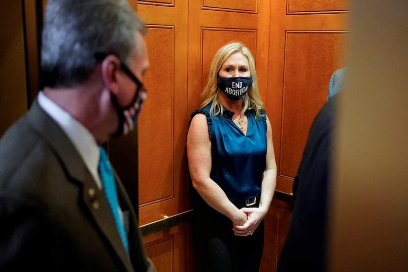 Marjorie Taylor Greene ganó en noviembre un escaño en la Cámara de Representantes por Georgia, gracias, en parte, a un anuncio en el que salía armada con un fusil de asalto advirtiendo a los “terroristas de Antifa” de que no pusieran “un maldito pie en el noroeste de Georgia”, y otro en el que salía con el mismo fusil junto a un collage con las fotos de Alexandria Ocasio-Cortez y otras congresistas jóvenes de izquierdas. Es hora, decía la candidata, de que “los cristianos conservadores fuertes pasen a la ofensiva contra estos socialistas que quieren romper nuestro país”. Se impuso a su rival demócrata con el 74% del voto. Y su actividad en este mes que lleva en el Congreso se ha centrado en pasearse con una mascarilla que dice “Trump ganó”, defender errónea y reiteradamente que efectivamente el republicano se impuso en las elecciones de noviembre por goleada, y redactar unos intrascendentes artículos de impeachment contra el presidente Joe Biden, el día después de su investidura, alegando “abuso de poder”.