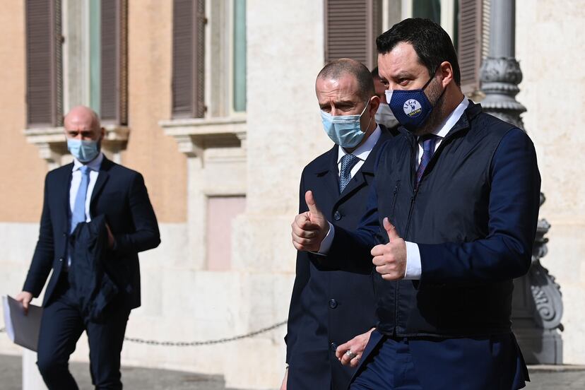 La Liga fue el primero en escuchar el plan de Draghi, que ni en Fráncfort gozaba de un respaldo semejante. El líder de la formación de ultraderecha no le conocía. Se habían visto una vez en un aeropuerto: un “hola y adiós”, admitió Salvini. Pero este segundo encuentro no pudo ir mejor. Un Salvini irreconocible salió encantado de la reunión y anunció que no pondrá condiciones al apoyo. “Hemos tenido media hora de debate sobre la idea de Italia, que en muchos aspectos coincide. Estamos contentos de que en el centro de la discusión esté el desarrollo, el crecimiento, la obra pública, que es lo que necesita Italia para volver a empezar”, afirmó.