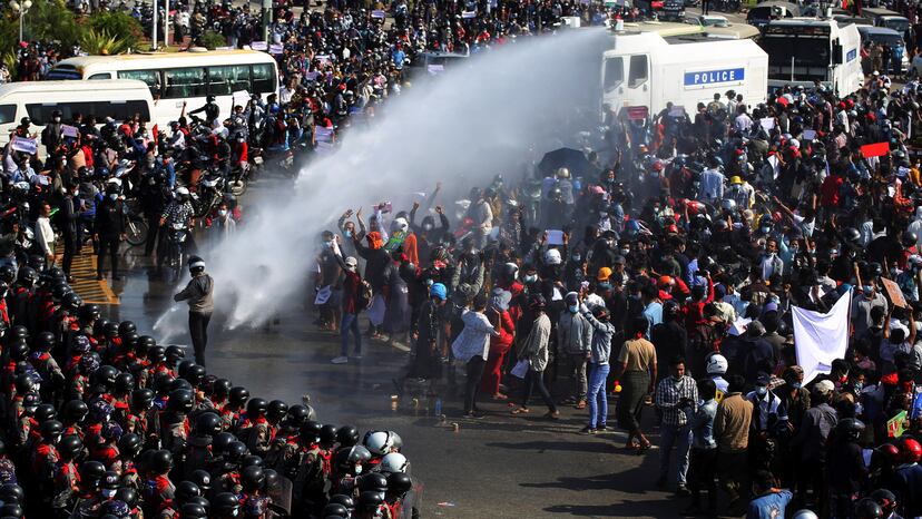 Este lunes, la policía birmana ya había recurrido a un cañón de agua para disolver una marcha de trabajadores en la capital, Naypyidaw, contra la junta militar, uno de los numerosos actos de desafío que se han celebrado por toda Myanmar, la antigua Birmania, contra el golpe de Estado perpetrado hace exactamente una semana. A las manifestaciones por todo el país se había sumado esta jornada la convocatoria de la huelga general, que ha tenido especial incidencia en Yangón, la capital económica y principal ciudad del país.