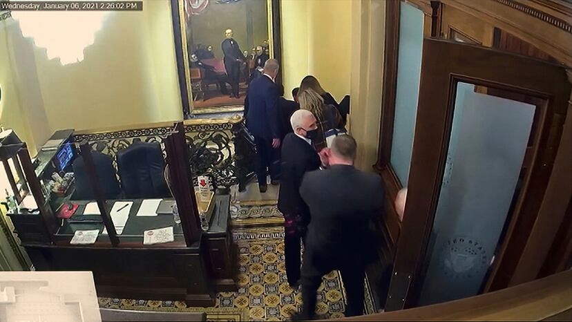 El entonces vicepresidente de Estados Unidos, Mike Pence, siendo evacuado junto a su familia. El líder de la mayoría demócrata en el Senado, Chuck Schumer, dándose la vuelta al toparse con un grupo de asaltantes. El senador republicano Mitt Romney, crítico con Trump, corriendo tras ser alertado por un agente. Son algunas de las impactantes imágenes que se pueden ver en una serie de vídeos del asalto al Capitolio del pasado 6 de enero inéditos hasta ahora. Los hicieron públicos los demócratas este miércoles, durante la segunda sesión del impeachment a Donald Trump. Son grabaciones de las cámaras de seguridad del edificio y muestran muchas más cosas: desde el momento en el que los seguidores del expresidente entran al Capitolio rompiendo dos ventanas hasta su enfrentamiento con los agentes de seguridad del recinto, pasando por el intento de uno de ellos de derribar la puerta de un despacho en el que se habían atrincherado varios funcionarios. Otro vídeo muestra cómo los senadores, que en el momento del asalto celebraban una sesión, corrían por un pasillo mientras una línea policial contenía a los asaltantes al fondo. Los demócratas defienden que Trump incitó este asalto y debe ser condenado por ello. Hasta la fecha, solo seis senadores republicanos les respaldan.