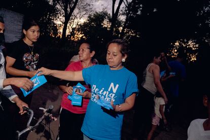 “¿Qué es un dictador?”, dice Flor Chávez, adelantándose a la pregunta. “Antes dijeron que era homosexual, drogadicto o que terminaríamos todos siendo musulmanes y vistiendo como en Oriente Medio, pero ya ninguna de esas mentiras nos afecta”, dice subida a una ola de entusiasmo que las encuestas recogen con claridad. “La gente agradece que tuvimos comida cuando la necesitamos. Bukele no divide El Salvador, el país ya estaba dividido”, resume.