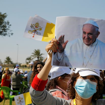 La cercanía con las pequeñas comunidades cristianas de la zona permanece estos días en como fondo del viaje. Los desplazamientos de Francisco —este es el número 33— siempre se han dirigido a las periferias del mundo y del cristianismo. Lugares donde la las comunidades cristianas viven amenazadas o han sufrido agresiones causadas por los conflictos bélicos, como Irak. “El nombre de Dios no puede ser usado para justificar actos de homicidio, exilio, terrorismo y opresión”, advirtió en su primer discurso. “También en Irak, la Iglesia católica desea ser amiga de todos y, a través del diálogo, colaborar de manera constructiva con las otras religiones, por la causa de la paz”, insistió.
