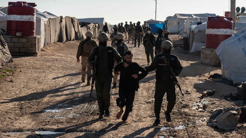 De madrugada, aún en medio de la oscuridad, una miliciana libera su trenza por debajo del pasamontañas antes de empuñar el fusil y tomar posición en la primera fila de un grupo de las Unidades Antiterroristas (YAT, por sus siglas en kurdo), una fuerza mixta de hombres y mujeres entrenada parcialmente por marines de Estados Unidos que lidera una amplia operación, bautizada como “humanitaria y de seguridad”, contra las células durmientes del Estado Islámico (ISIS, por sus siglas en inglés) que se esconden entre el mar de tiendas de Al Hol, el mayor campo de detención para familiares del grupo terrorista en el noreste de Siria.