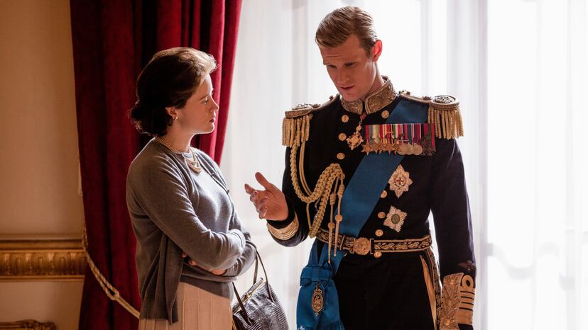 Philip, el personaje, es uno de los hallazgos de la serie precisamente por el misterio del que se rodeó siempre el príncipe Felipe de Edimburgo verdadero, del que apenas conocemos su saludo regio y sus incorrectos chistes salidos de tono. El misterio concede más carta blanca sobre la que construir una ficción verosímil, te lo crees más que a Carlos, porque le conoces menos. Con la imagen del eternamente anciano duque en la cabeza, sorprende el vigoroso y rebelde Philip juvenil, interpretado por Matt Smith en las primeras dos temporadas, capaz de enfrentarse descamisado a un elefante furibundo en África y de tener tremendas pataletas de niño pijo. De sacrificar por amor una vida de acción por otra de protocolo y en la escena siguiente carecer de la mínima empatía matrimonial, burlándose del peinado de su esposa o yéndose de copas con los amigotes con la que ella tiene encima (pongamos una crisis de Estado, una sangrienta revolución en las colonias...). El retrato general no es muy amable, pero aporta humanidad a la protagonista.