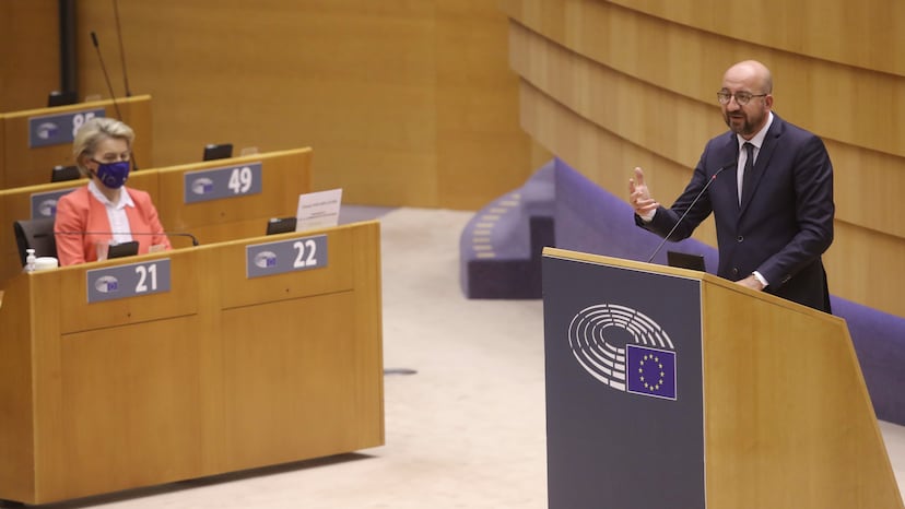 Von der Leyen, por su parte, ha anunciado que antes de fin de año presentará nueva legislación para combatir la violencia contra las mujeres y los niños. La presidenta de la Comisión ha calificado también como inaceptable la aparición en Europa de las llamadas zonas libres de LGTBIQ. “Me parece mentira que en 2021 todavía tengamos que estar hablando de que todas las personas tienen los mismos derechos, con independencia de a quién amen o de dónde vengan”, ha concluido Von der Leyen una intervención que ha recibido un aplauso todo lo caluroso que un hemiciclo prácticamente vacío por la pandemia podía ofrecer.