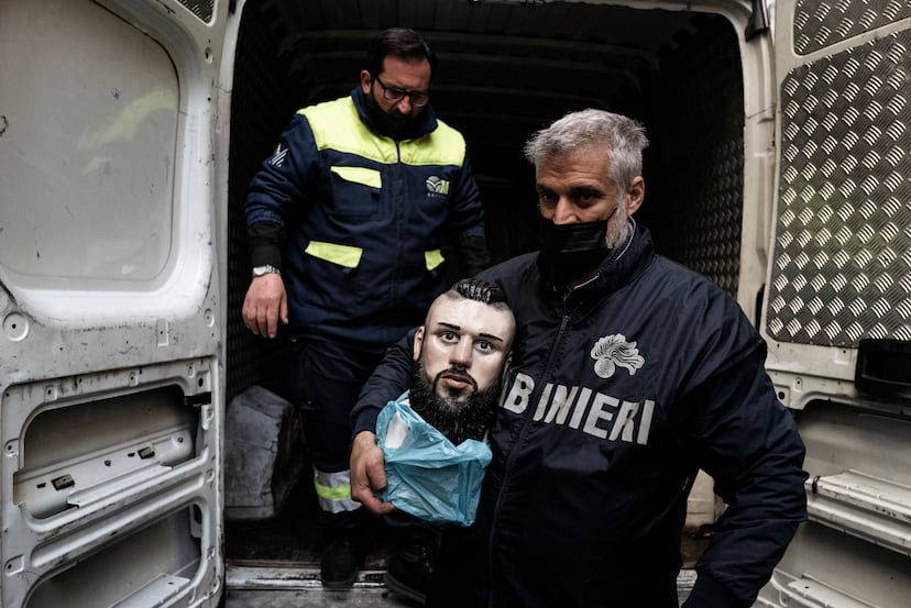 Sibillo se alió con los sobrinos de los Giuliano, el clan que reinó en el barrio de Forcella y que había sido humillado. Montó una banda plagada de chicos con apodos como el Polpetta (albóndiga) o el Malegno (maligno). Cambió la estética: tatuajes, barbas largas, gafas de pasta. Tiñó sus hazañas de un cierto idealismo social y libró a los comerciantes de su barrio de pagar el pizzo —el impuesto mafioso— que llevaban años despachando con las viejas familias. Muchos le vieron como una suerte de Robin Hood de la delincuencia. Por eso, cuando murió, algunos tenderos hicieron una colecta para pagar un ostentoso altar en el patio del edificio de su casa. Un lugar de peregrinación —muchos de esos comerciantes se santiguaban todavía al pasar por delante como si fuera un santo— que la mañana del miércoles fue desmontado por los carabinieri en el marco de una operación que pretende librar a Nápoles de lugares de culto a la delincuencia y de todo tipo de representaciones que ensalcen la memoria criminal.