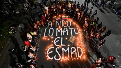 La ciudad de Cali ha sido una de las localidades donde la represión ha sido más violenta. El 28 de abril, un policía asesinó a Marcelo Agredo Inchima, un chico deportista de 17 años que formaba parte de las protestas contra la reforma tributaria del Gobierno: después de empujar a un policía en una moto, el uniformado le disparó, y el cadáver del joven fue llevado por unos pocos transeúntes en pánico. Días después, en la noche del 2 de mayo, la policía disparó a Nicolás Guerrero, un artista de 22 años que grababa enfrentamientos entre los manifestantes y las autoridades en el norte de la ciudad. “Yo escuché los disparos y, aunque pensé primero que la policía usaba armas de goma, en realidad era armas de fuego”, cuenta Juan David Gómez, abogado que también filmaba las protestas. “Resulta que a Nicolás le dan en la cabeza, la policía apaga la luz de las calles, y yo estaba en una gasolinera que tenía luz. El muchacho tenía la cabeza reventada. Murió a nuestros pies, a los pies de 20 o 30 personas que lo auxiliamos, y lo vimos agonizar. Es la primera vez que veo un muerto ante mis ojos”.