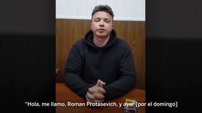 El breve vídeo difundido el lunes por la noche por un canal de Telegram progubernamental en el que el periodista enuncia una confesión visiblemente preparada, al estilo de los vídeos orquestados tradicionalmente por el KGB, inquieta aún más a la familia. Protasevich, ha alertado el portavoz de la oficina de derechos humanos de la ONU, Rupert Colville, parece coaccionado en las imágenes incluso podría mostrar señales de golpes, aunque en el oscuro vídeo es difícil de apreciar. También su novia, Sofia Sapega, una joven rusa de 23 años, estudiante en Vilna y detenida el domingo junto a Protasevich, ha protagonizado su propia grabación de confesión en la que, recitando un texto memorizado y al borde de las lágrimas, afirma que es la “directora” de un canal de Telegram (el Libro Negro de Bielorrusia) que ha difundido “datos personales” de personal de seguridad: un delito grave en la antigua república soviética. Sus abogados han firmado un compromiso de no hablar con la prensa sobre la joven.