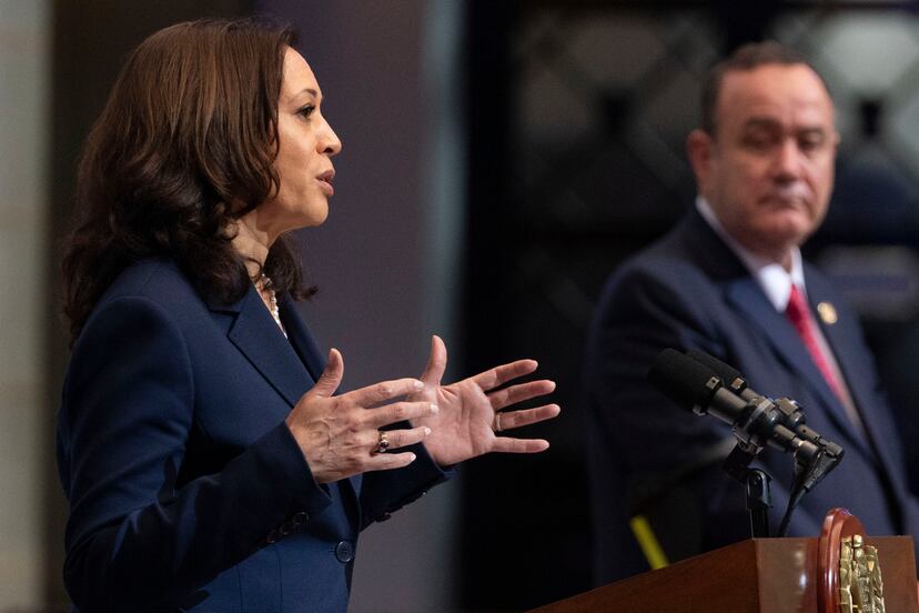 La vicepresidenta promete frente al presidente Giammattei millonarios recursos y una fuerza de combate a la corrupción. A los guatemaltecos les dice: “No vengan a EE UU, serán enviados de vuelta”
