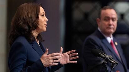 Kamala Harris, la vicepresidenta de Estados Unidos, comenzó su primera visita al extranjero con un mensaje de esperanza. “La ayuda viene en camino”, ha dicho la tarde de este lunes en Guatemala, la primera parada antes de visitar México, dos países a los que pretende arrancar compromisos concretos para reducir el flujo de migrantes rumbo al norte. Ante el presidente guatemalteco, Alejandro Giammattei, Harris ha prometido en una reunión de dos horas a puerta cerrada gestionar ante empresarios estadounidenses inversiones locales, un programa de empoderamiento a mujeres jóvenes, una fuerza especial que ayude con investigaciones contra la corrupción y apoyos para la lucha contra el narcotráfico y las bandas de tráfico de personas que trabajan en las fronteras sur y norte del país centroamericano. Entre todos esos anuncios, la vicepresidenta aprovechó la conferencia de prensa en Palacio Nacional para comunicar de cara al sur un mensaje urgente para la Administración de Joe Biden: “No vengan a Estados Unidos. Seguiremos aplicando la ley y reforzando las fronteras... si llegan [ilegalmente] serán enviados de vuelta”.