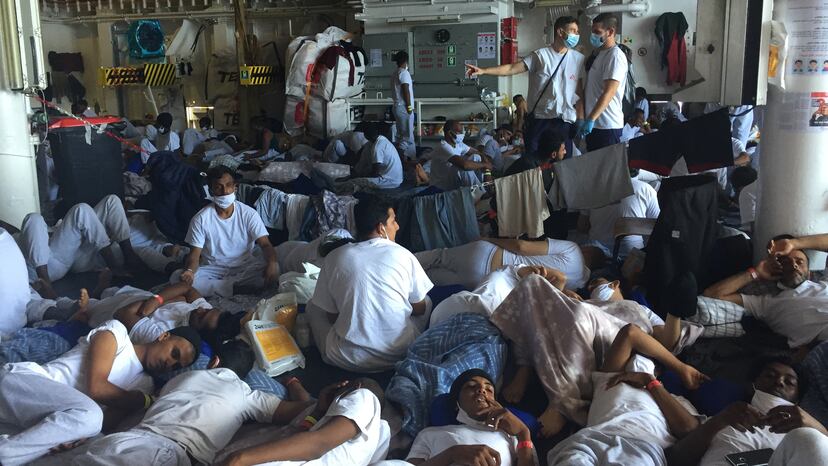 Barbara Deck reconoce que la situación es compleja. “Están a bordo en un lugar confinado con mucha gente, es ruidoso, hace calor… Tenemos gente que lleva cinco días, gente que igual lleva un par de días menos, pero nunca deberían estar a bordo por días”. El puerto de destino es una pregunta constante. “Quieren saber qué está pasando y no tenemos mucho que decirles más que estamos esperando”, lamenta. También hay otra expresión que no dejan de repetir: “Libia no. Libia no”.