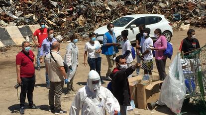 El barco había puesto los motores en marcha el viernes a las 05.00 de la madrugada para acercarse hasta la costa desde el punto de ancla que le habían asignado la noche anterior. Al entrar en el puerto, fue ubicado en una zona rodeada de grandes montañas de chatarra, próxima a una explanada donde ya se alzaban unas carpas de color blanco, a cierta distancia unas de otras, donde las autoridades han establecido los puntos para proceder al registro de los migrantes. Desde el día anterior muchos rescatados del Geo Barents se habían puesto su ropa y guardado sus pertenencias en la mochila azul que recibieron cuando llegaron, preparados para cuando llegara el momento.El viernes, algunos se atusaban el pelo y un joven marroquí sacó su bufanda verde y blanca del Raja Club Athletic, uno de los equipos de fútbol de la ciudad de Casablanca. “Es como el Atlético de Madrid”, bromeaba.