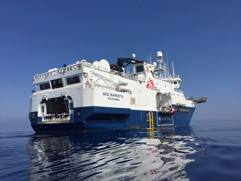 Samira, Jasmine y Aiman juegan con unos cartones y unos rotuladores a bordo de un barco enorme al que subieron hace unos días. “¡Le grand bateau! ¡Le grand bateau!”, dicen. Las niñas hablan francés, el niño árabe, pero se han convertido en camaradas de juegos y comparten galletas a bordo del Geo Barents. Se trata de un barco que nada tiene que ver con el bote de madera en el que navegaban hacinados en brazos de sus madres y más de un centenar de desconocidos antes que el equipo de rescate de Médicos Sin Fronteras (MSF) los encontrara a la deriva en el mar.