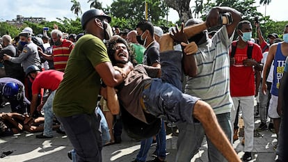 Durante meses la isla había logrado controlar el virus, manteniendo los contagios en decenas, pero en las últimas semanas se cuentan por miles. Servicios médicos en lugares como Matanzas han llegado al colapso, al mismo tiempo que escasean medicinas básicas como antibióticos o analgésicos en la isla. Los reclamos ciudadanos de este domingo se mezclan con la presión para que el Gobierno acceda a abrir las fronteras para recibir ayuda humanitaria, un punto crítico para el régimen cubano, que siempre ha apelado a la fortaleza de su sistema sanitario como uno de sus pilares de imagen exterior.