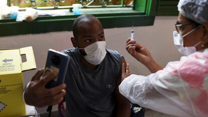 El soplo de esperanza también lo siente el funcionario Kássyo Modesto, de 33 años. Se aplicó la primera dosis de la vacuna contra la covid-19 el pasado 5 de julio en Fortaleza, donde ya se vacuna al grupo de los nacidos en 1989, pero se suspendió la vacunación de los nuevos grupos este viernes debido a la escasez de dosis. Modesto lleva año y medio recluido con su mujer y su hija de dos años, que solía preguntar cuándo llegaría la vacuna para poder volver a ver y abrazar a sus primos. “Ahora veo una luz al final del túnel. El año pasado no veía expectativas, ahora tenemos la esperanza de volver a una vida normal. El plazo es ahora más tangible”, dice.