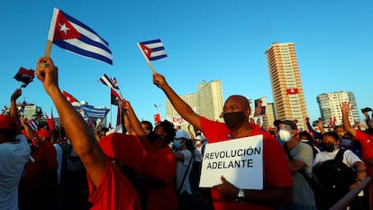 La fecha más importante del imaginario revolucionario en Cuba tuvo este año un bajo perfil. No hubo ni acto central en La Habana ni grandes discursos para celebrar el asalto al cuartel Moncada el 26 de julio de 1953, la acción que marcó el inicio de la lucha armada de Fidel Castro contra la dictadura de Fulgencio Batista. La efeméride, que durante seis décadas se ha celebrado por todo lo alto, esta vez estuvo condicionada por la pandemia y el eco de las masivas protestas que sacudieron el país los pasados 11 y 12 de julio, un hecho inédito que tanto las autoridades como la sociedad todavía tratan de digerir. Obviamente, la grave situación epidemiológica -por segundo día consecutivo se sobrepasaron los 8.000 contagios- influyó en que no se promovieran concentraciones, si bien ello no impidió la organización el 17 de julio de un gran acto de reafirmación frente a la embajada norteamericana con miles de personas, al que asistieron el presidente cubano, Miguel Díaz-Canel, Raúl Castro y los principales dirigentes del país.
