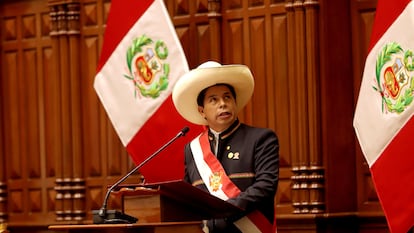 En su primer discurso como presidente, Castillo ha criticado las castas y las diferencias que comenzaron “con la era colonial y que aún persisten”. El nuevo mandatario ha propuesto impulsar la producción minera e industrial y aumentar los presupuestos de educación y agricultura. “Es la primera vez que este país será gobernado por un campesino”, ha dicho. Tras superar las elecciones más duras de la historia reciente del país, Castillo se convierte en el sucesor de Francisco Sagasti, el mandatario que asumió el poder de manera interina después una semana caótica en noviembre de 2020 que inició con la destitución de Martín Vizcarra y siguió con un efímero paso por la presidencia de Manuel Merino. El profesor fue proclamado ganador de las elecciones el pasado 20 de julio tras una ajustadísima contienda en la que logró 44.000 votos más que Keiko Fujimori, de Fuerza Popular. Así le hemos contado la ceremonia de asunción: