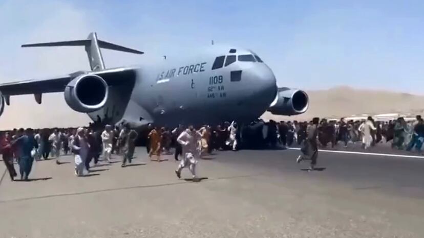El pánico por la llegada de los talibanes ha desatado el caos en Kabul, la capital de Afganistán. Miles de ciudadanos temerosos de quedar atrapados bajo la férula de los extremistas islámicos han acudido al aeropuerto en la mañana del lunes con la vana esperanza de poder salir del país. En una escena que refleja la desesperación de muchos, decenas de jóvenes han tratado de agarrarse al fuselaje de un avión militar estadounidense que iba a despegar. Al menos siete personas han muerto en varios incidentes. Mientras, los talibanes han reiterado a sus combatientes que deben respetar la propiedad ajena, e insistido en que el país está en calma.