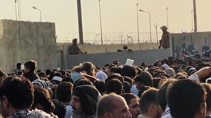 Todo esto ocurrió el domingo pasado. Pero cada día se repiten escenas parecidas. Entrar al aeropuerto de Kabul sigue siendo la pesadilla recurrente de miles —tal vez decenas de miles— de afganos que tratan de huir de su propio país, que tras la victoria de los talibanes se ha convertido para ellos en un territorio mortal. Y la pugna para conseguirlo es ya una carrera contrarreloj después de que un portavoz talibán asegurara este lunes en una entrevista a Sky News que su intención es tomar el control absoluto del aeropuerto a partir del 1 de septiembre. Si esto se cumple, solo quedan ocho días para escapar.